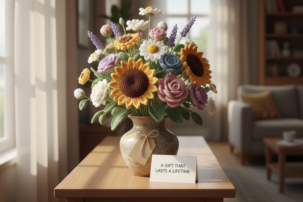 Unlike traditional bouquets, crochet flowers don’t get thrown away after a week. Whether it’s a birthday, anniversary, or “just because” moment, your gift will be remembered — and displayed — for years.