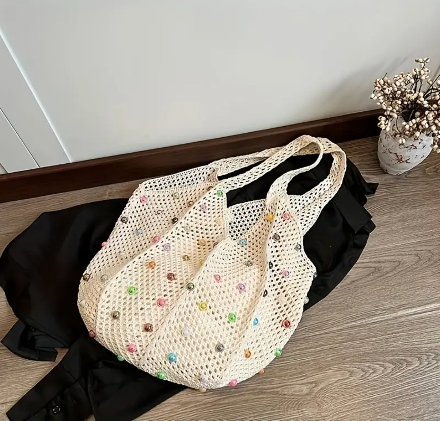 Handmade Crochet Tote Bag with Colorful Stones– Reusable & Stylish Shoulder Bag Crossbody Tote Bag for Women