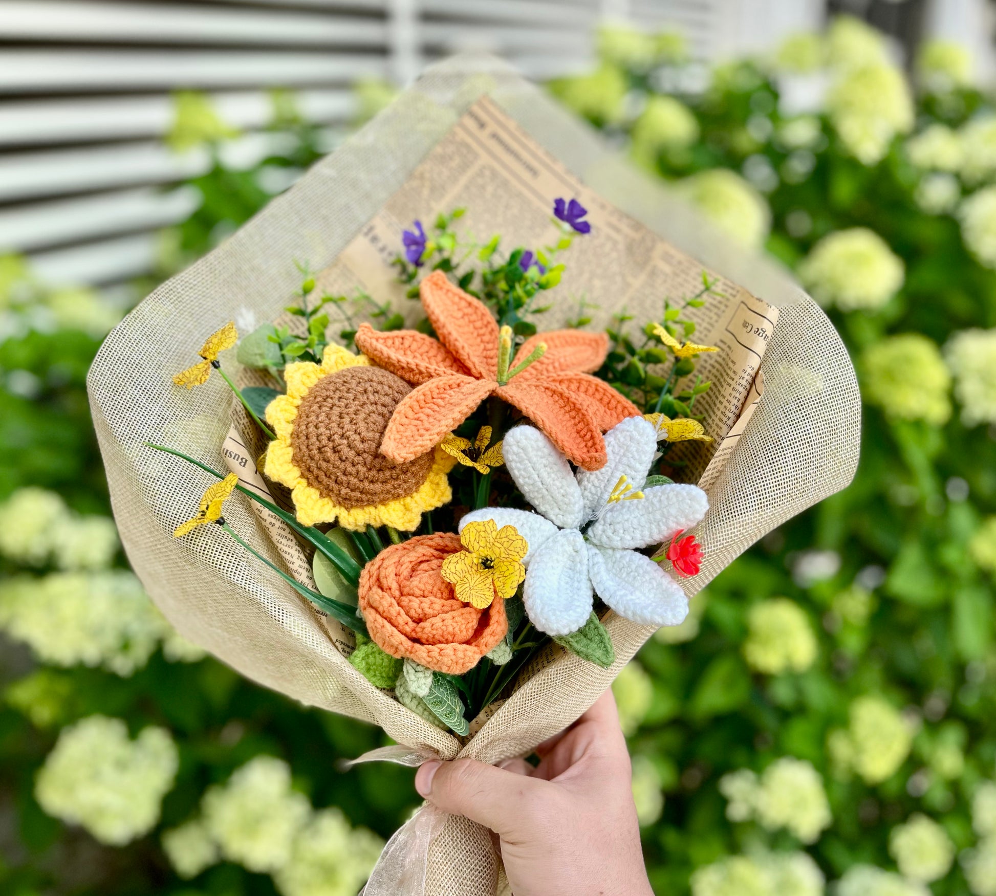 Handmade Premium Forever Sunflower and Lilly Crochet Bouquet – Long-Lasting crochet Flower Gift & Home Decor