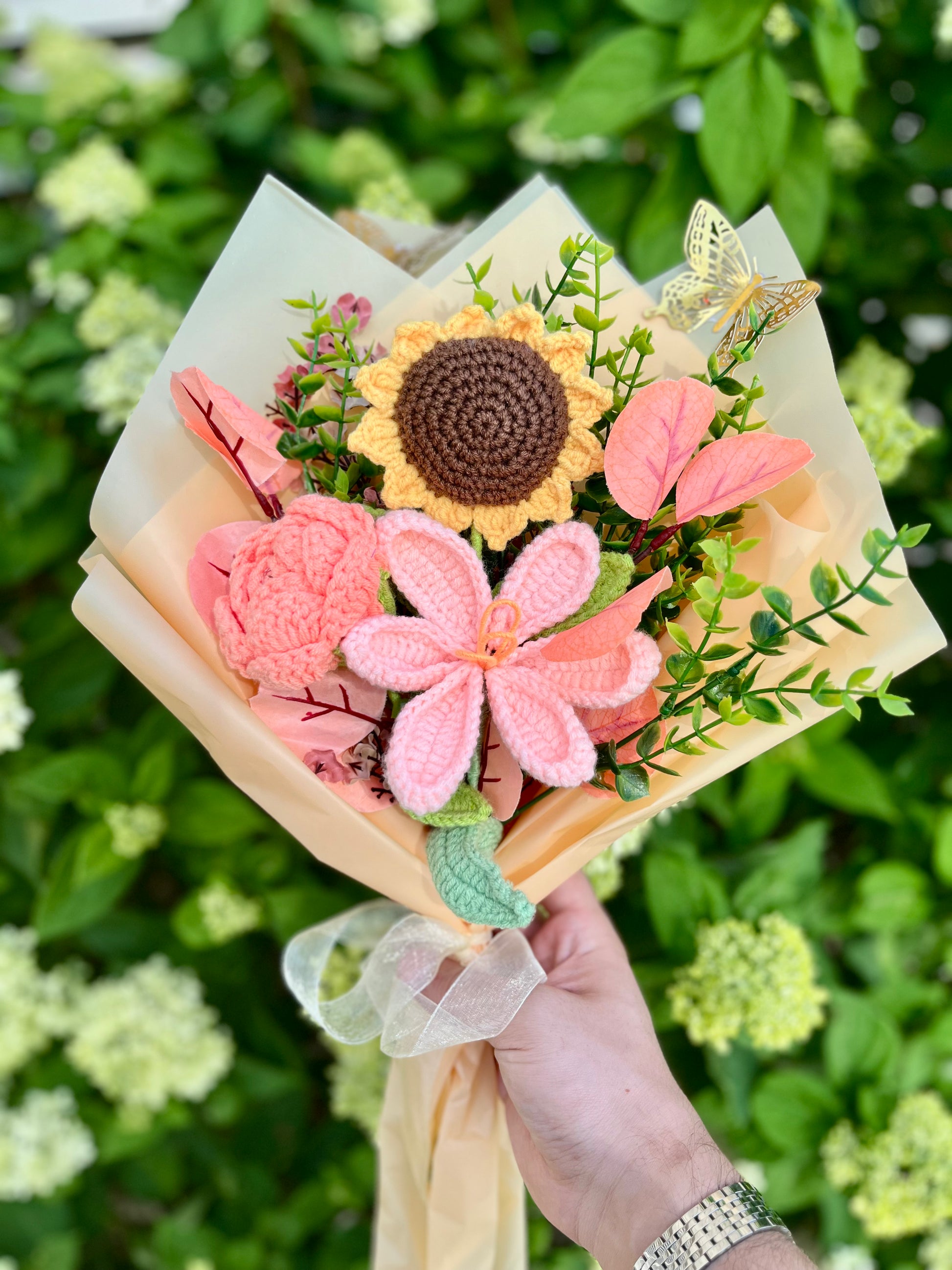 Knitted Summer Crochet Bouquet – Long-Lasting crochet Flower Gift & Home Decor