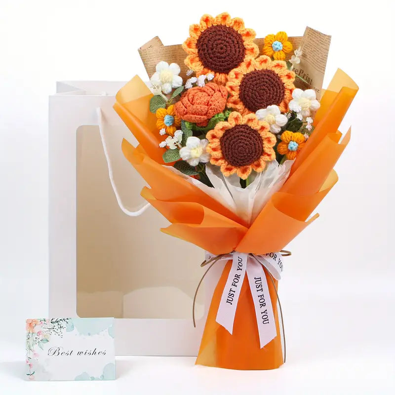 Sunflower Crochet Flowers Bouquet, Handmade Finished Knitted Flower Bouquet for Birthday Housewarming Gift & Handmade Home Decor
